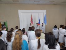 Новая учебная неделя в нашем колледже по традиции началась с поднятия флагов: Российской Федерации, Тверской области и Вышневолоцкого городского округа. Право поднять флаг было предоставлено студентам 15 А группы. Поднятие флага сопровождалось гимном Российской Федерации, который ребята дружно исполняли. Затем наше общение продолжилось на уроке «Разговоры о важном» тема: «Россия – здоровая держава»